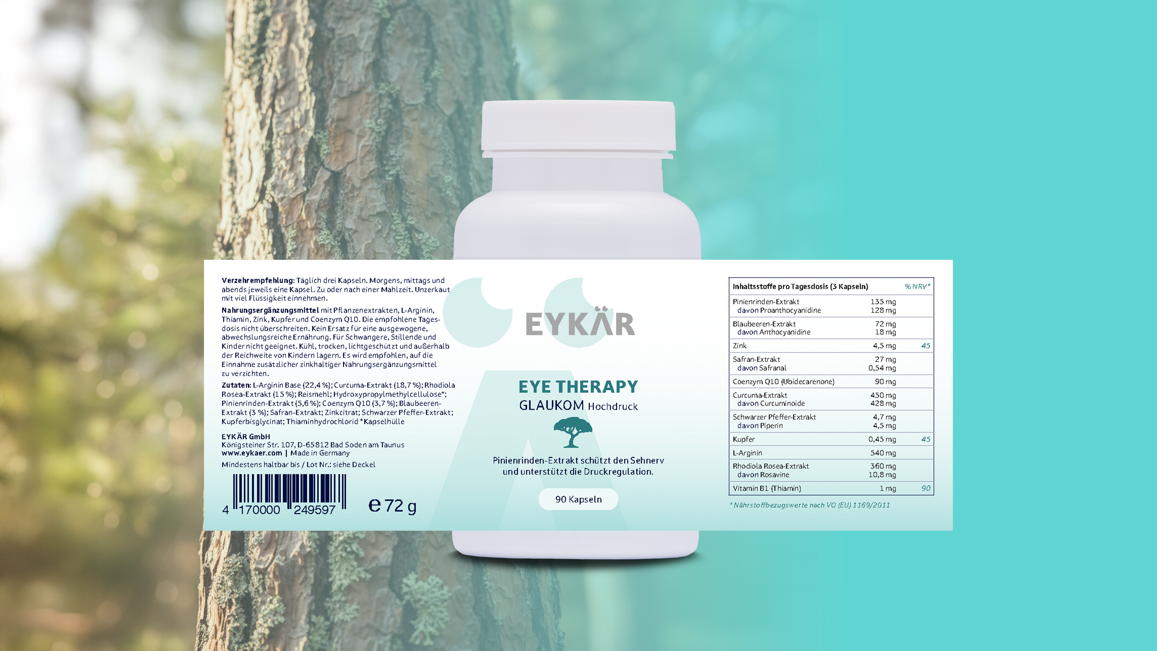 EYKÄR setzt einen neuen Standard: Erstmals gibt es ein Spezialprodukt, das gezielt auf die Ausprägung des Hochdruck-Glaukoms ausgerichtet ist und alle entscheidenden Wirkmechanismen vereint. Eine echte Weltneuheit, die Praxiswissen und modernste Forschung zu einem einzigartigen Schutzkonzept verbindet.