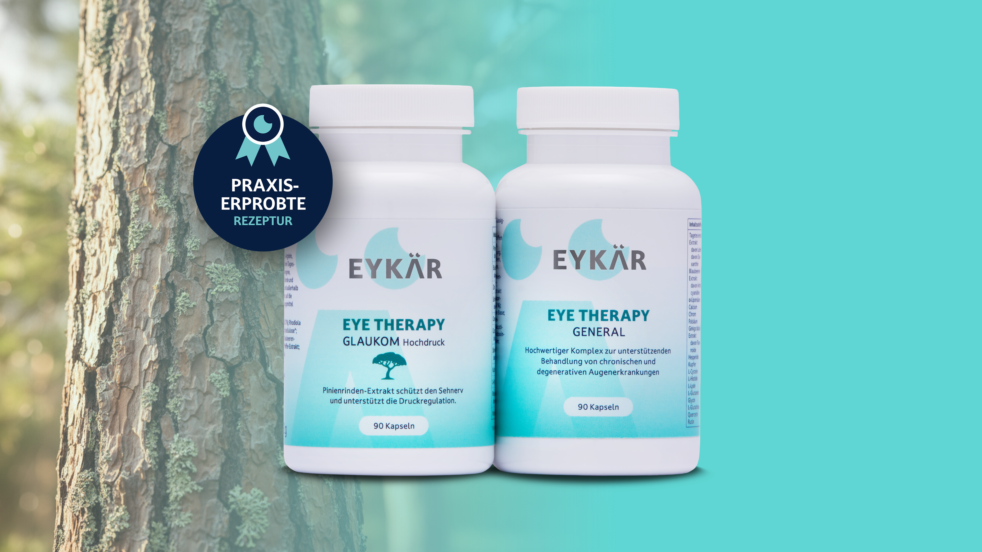 Mit EYE THERAPY GLAUKOM HOCHDRUCK setzt EYKÄR gemeinsam mit EYE THERAPY GENERAL einen neuen Standard: Erstmals gibt es ein diagnosespezifisches Spezialprodukt, das im Zusammenspiel mit einer umfassenden Basisversorgung alle entscheidenden Wirkmechanismen beim Hochdruck-Glaukom adressiert.
